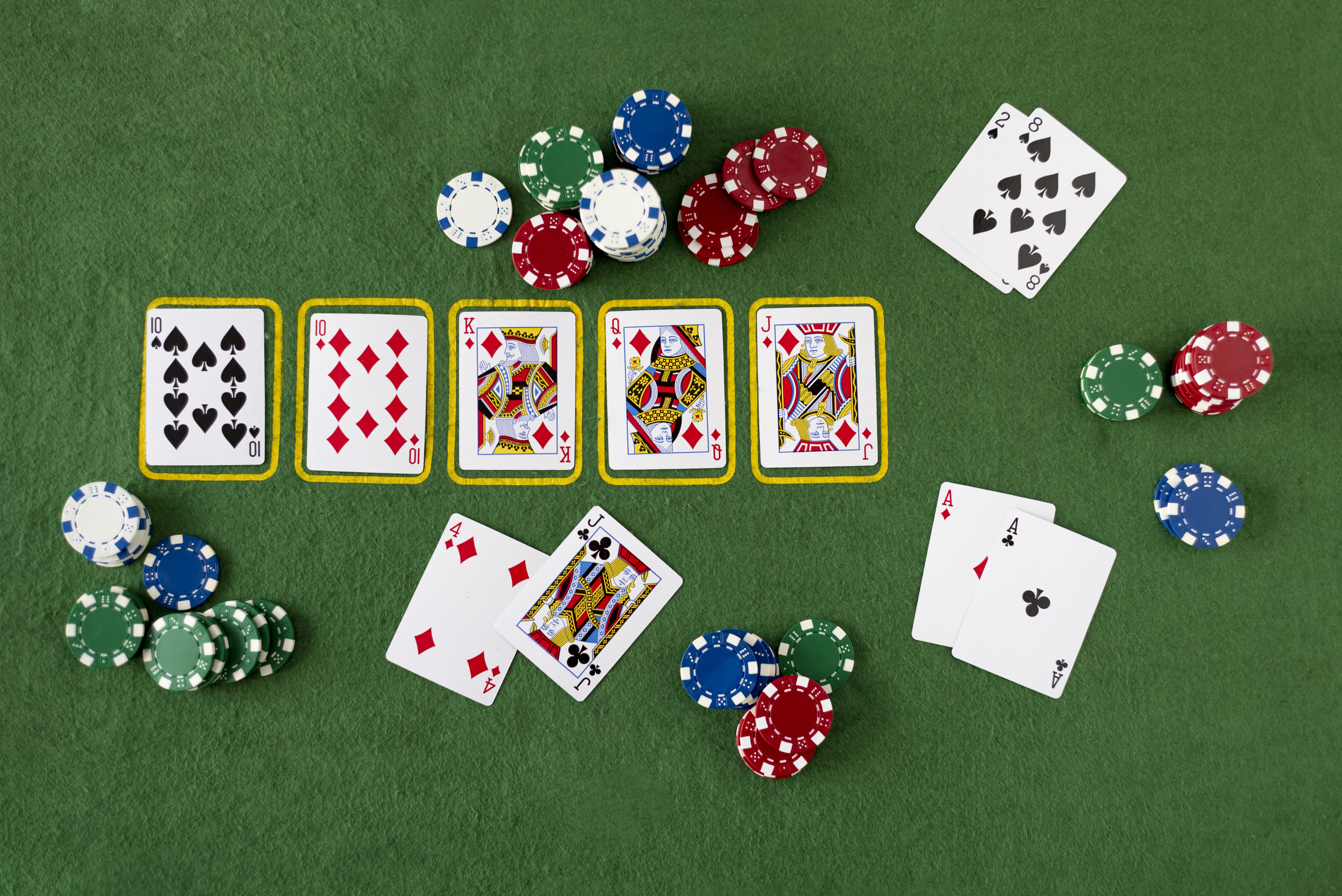 3. スタッドポーカー:一部のカードが公開される