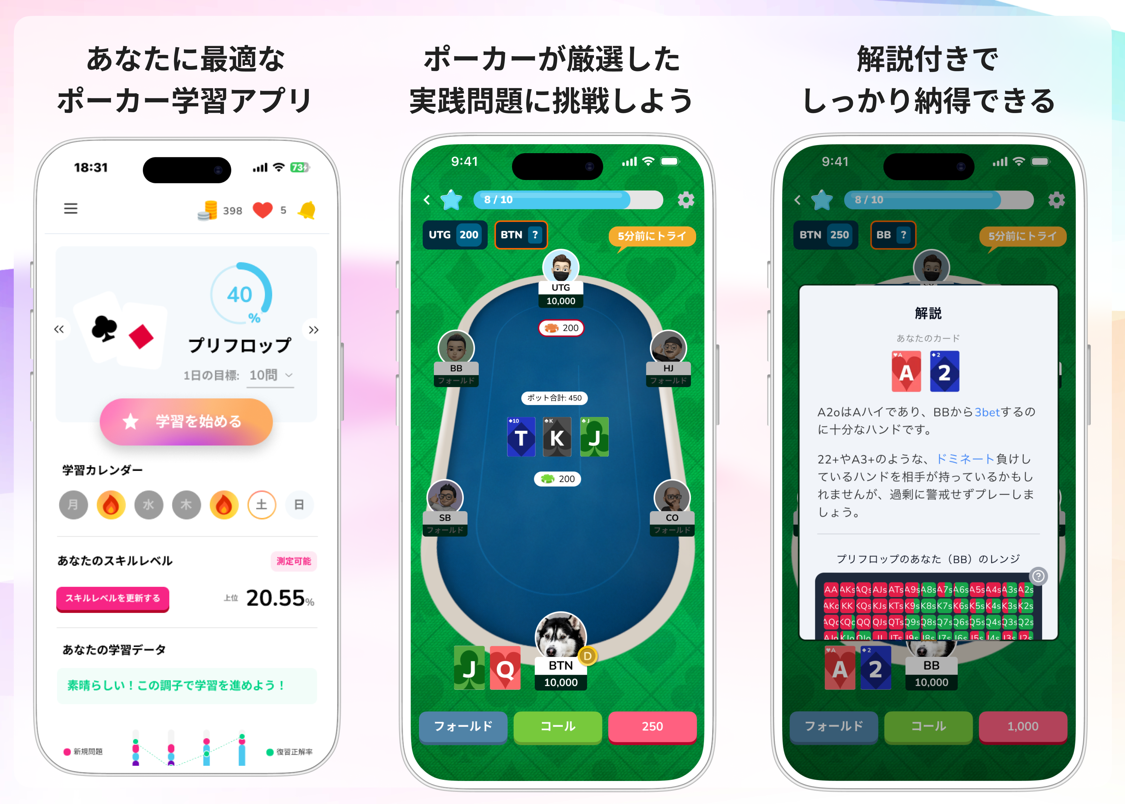 東大発ポーカーAI学習アプリ 『POKER Q'z』のアプリダウンロードはこちら↓