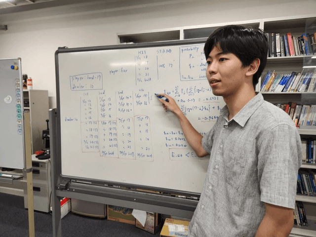 僕はもともと高校時代から麻雀をやっていたのですが、ポーカーも麻雀と似ていて面白いゲームだと感じました。ポーカーと麻雀には、共に相手の手がわからない中で、最適なアクションを考えるという共通点があります。しかし、ポーカーは麻雀以上に人読みが大切で、相手に合わせていろいろなプレイを試せる点に魅力を感じました。これがポーカーサークルに入会したきっかけです。