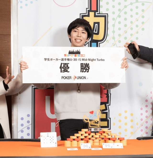ポーカーの実績としては、30歳未満のプレイヤーが出場可能なトーナメント「学生ポーカー選手権」で優勝したことがあります。