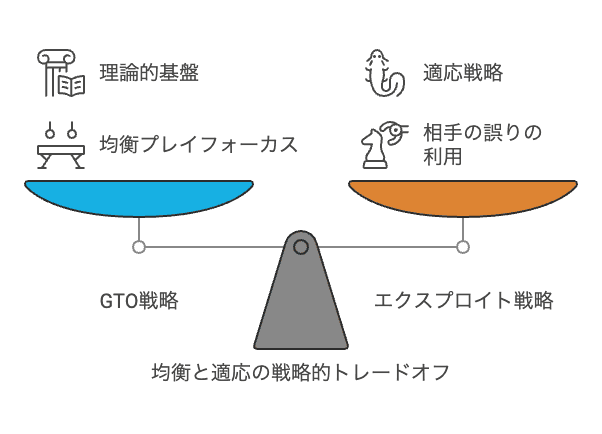 - GTO戦略: 自分が搾取されないための戦略。長期的に安定した収益を得るための基盤となる。