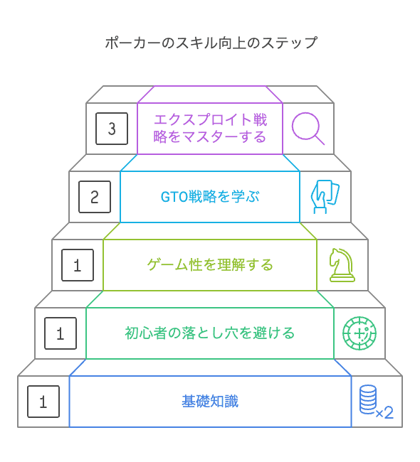 GTO戦略は一見難解に思えるかもしれませんが、効率良く学習するための手順を踏めば理解しやすくなります。