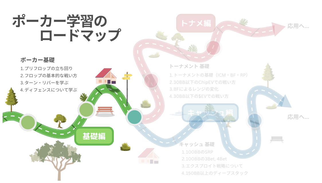 【初心者必見】ポーカーで強くなる学習ロードマップ〜基礎からキャッシュ・トナメルートについて〜