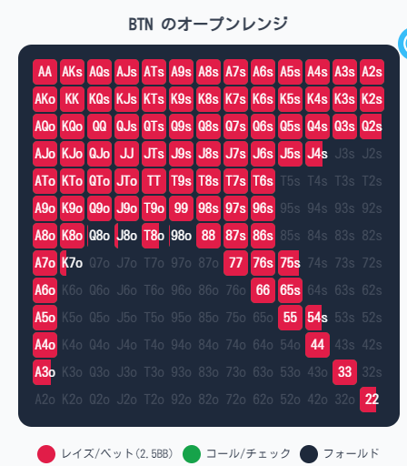 まずはプレイする機会が多いSRP(=「プリフロップでのレイズが1回の場面」)について弱点のない戦略(=GTO)を学びましょう。