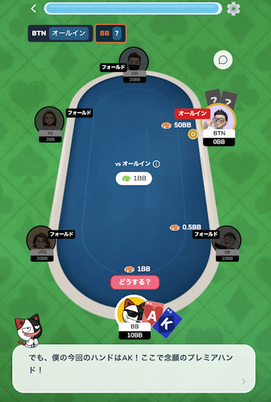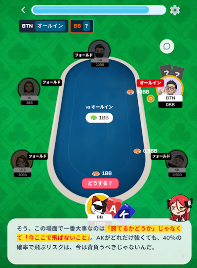 POKER Q'zは、最新のAIを用いて楽しく、分かりやすく、ポーカーを学べるアプリになっています。