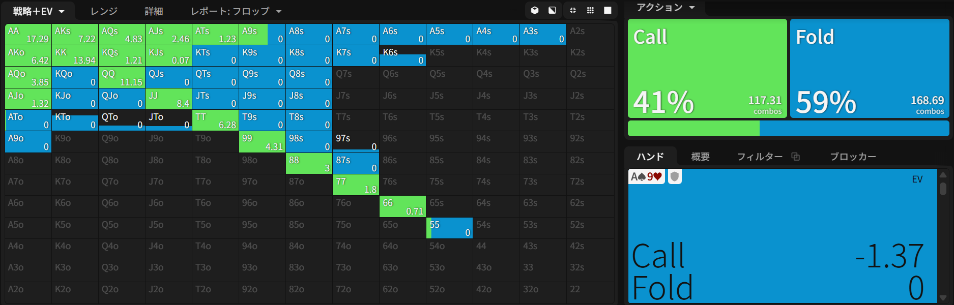 ここでAJoをフォールドした人も、A9oをコールした人も、