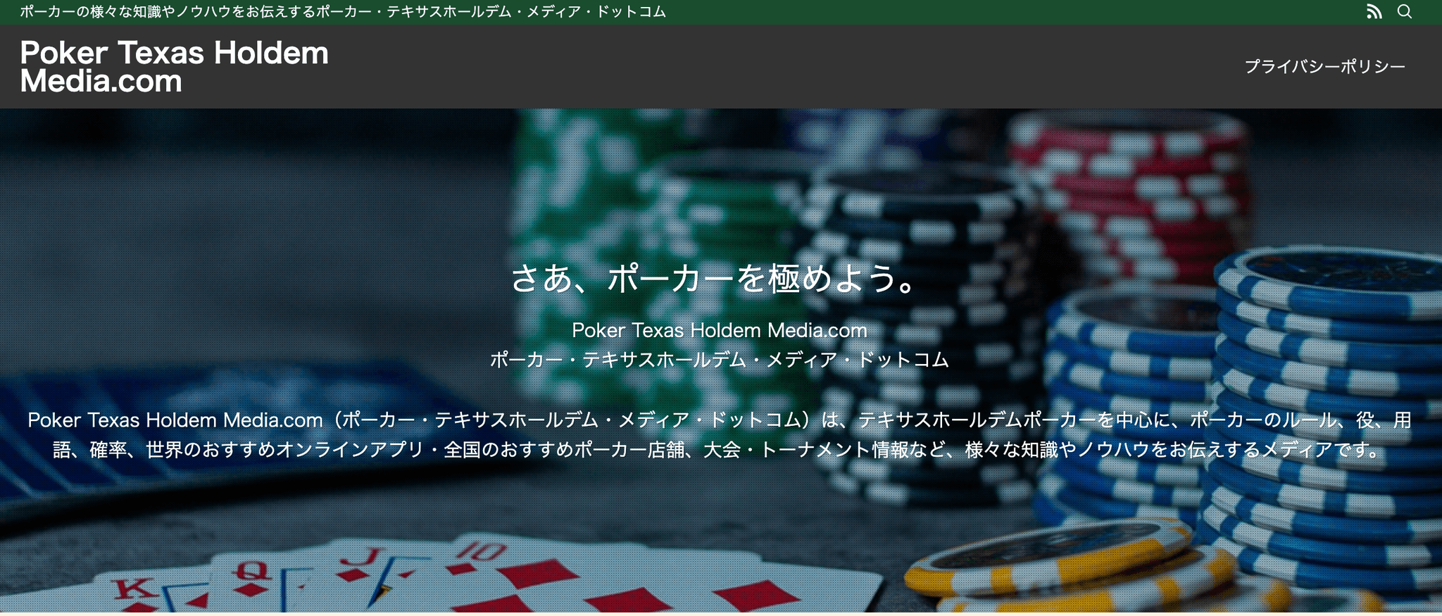 Poker Texas Holdem Media .com(ポーカー・テキサスホールデム・メディア・ドットコム)様は、テキサスホールデムポーカーを中心に、ポーカーに関する様々な知識やノウハウを発信中!